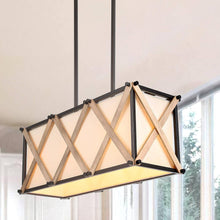 Staenrobodur 3-Light 25-in Black&Wood Farmhouse Rectangle Kitchen Island Light