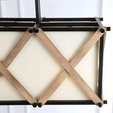 This rustic 3-light linear chandelier incorporates natural wood and metal elements to create a subtle aesthetic. The bronze metalwork coupled with distressed wood crisscross is the perfect compliments to the beige linen shades.